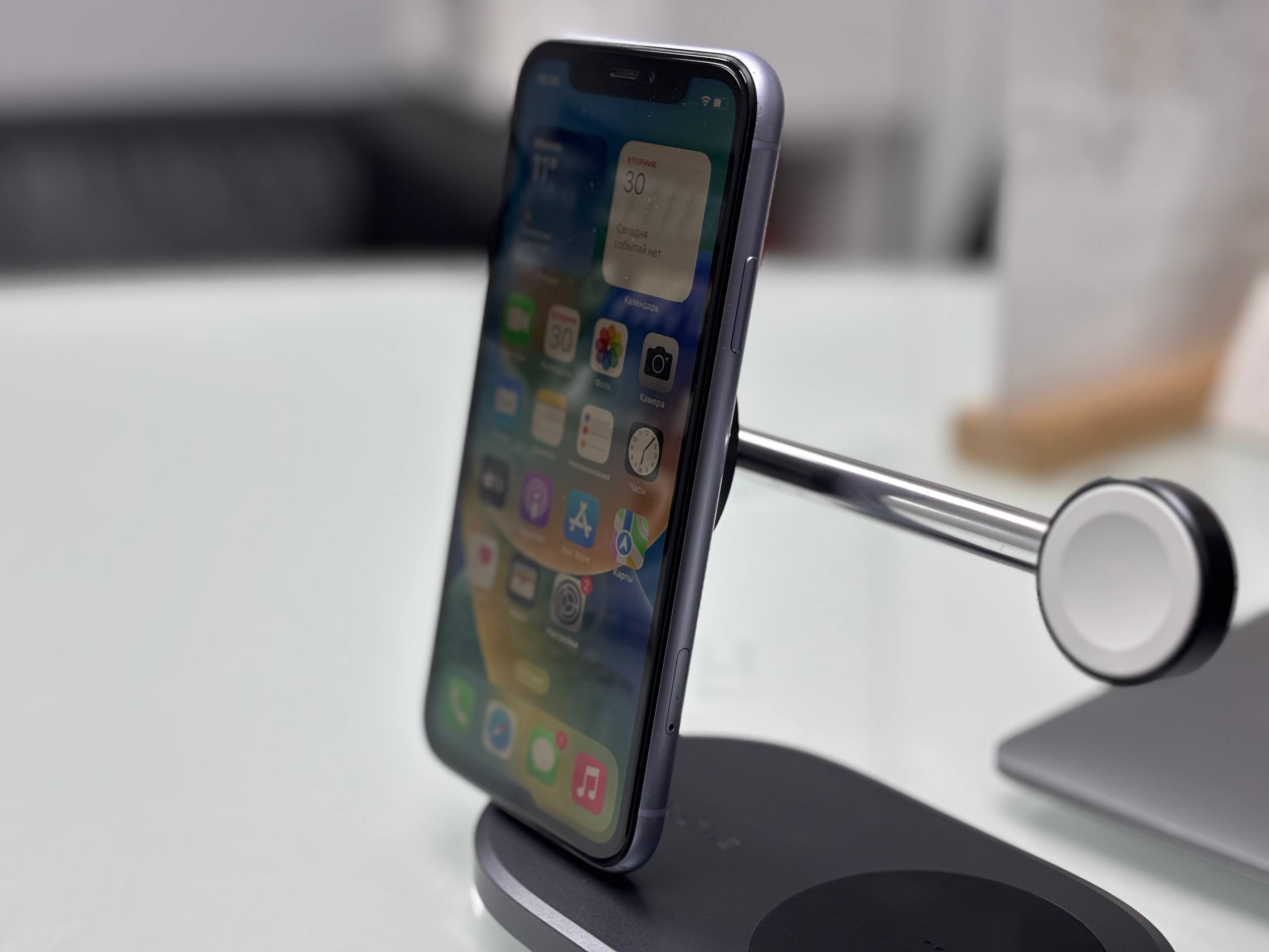 iPhone 11 64Гб, 73% / Без коробки / Заменён дисплей, Фиолетовый - Б/У . . +